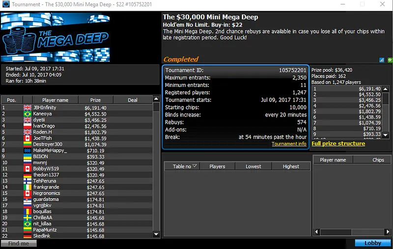 Já no The $30,000 Sunday Crocodile, Anão19 saiu com o título e ainda recebeu $6,450 de premiação.