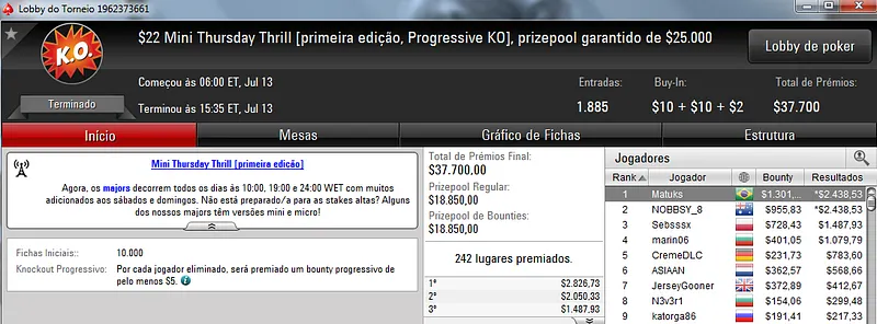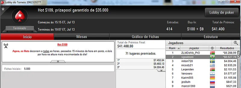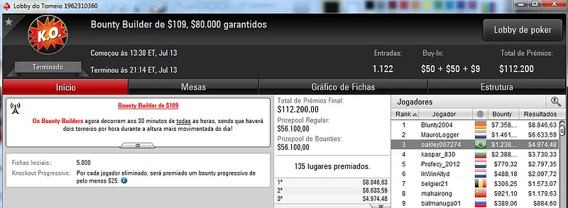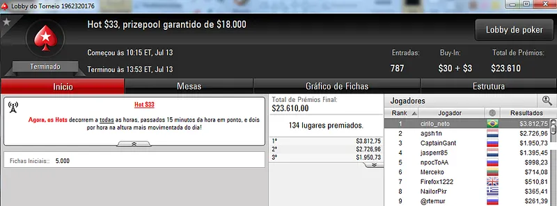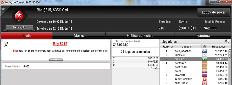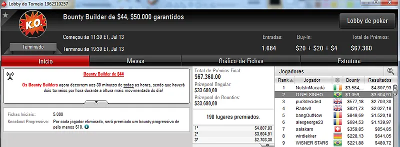 Destaque também para jason13-2008 que terminou na quinta colocação e recebeu $3,809 de prêmio.