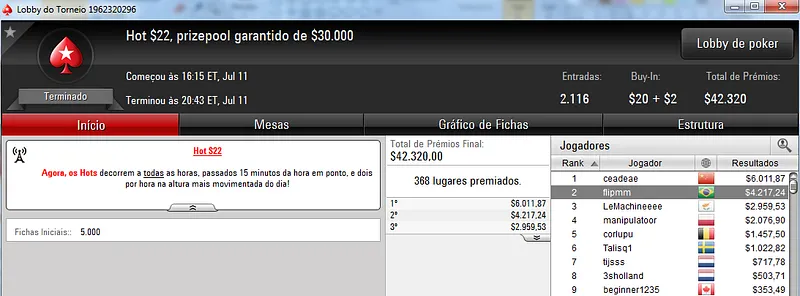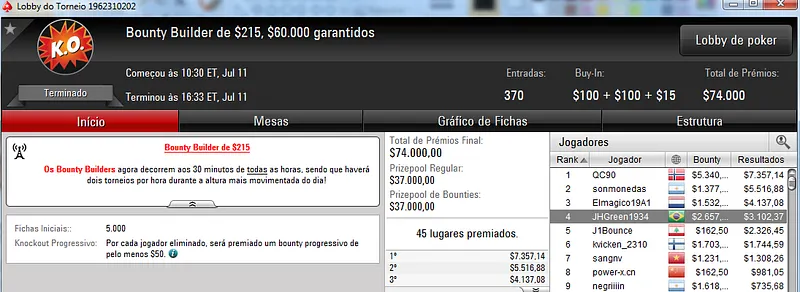 O PokerStars voltou a entregar bons prêmios aos jogadores brasileiros na reta de ontem