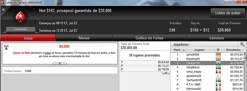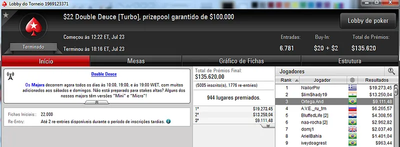 Mas não foi tudo, mais três jogadores chegaram à mesa final deste evento. Ricee&Beaans, HamPresunto e xHomerzimMx receberam $4,137, 2,903 e 1,429, respectivamente.