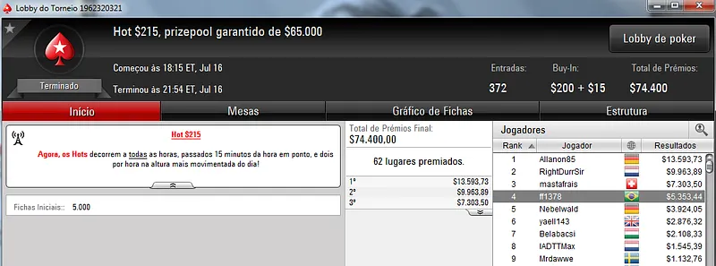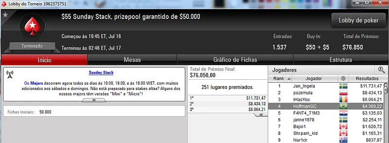 Mais um domingo cheio de forras brasucas no panos virtuais do PokerStars. As torneios regulares da maior sala de poker online do mundo voltaram a encher-se para darem grandes prêmios.