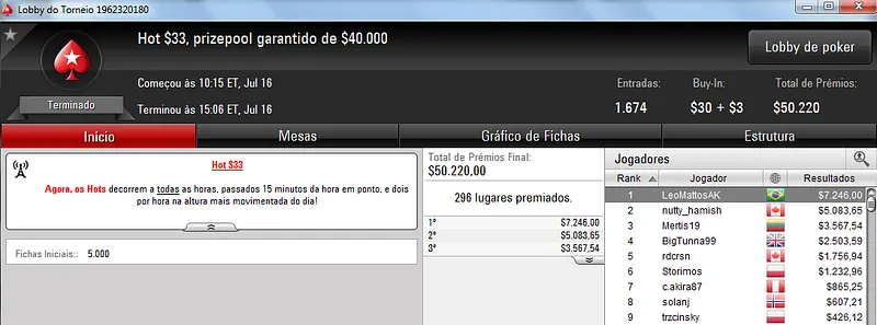 O Hot $109 teve 903 entradas e o prize pool chegou aos $90,300. Na segunda colocação Vitor "Vitorbrasil" Moreira recebeu $12,960 depois de dividir o prêmio com o canadense ISmellToast.