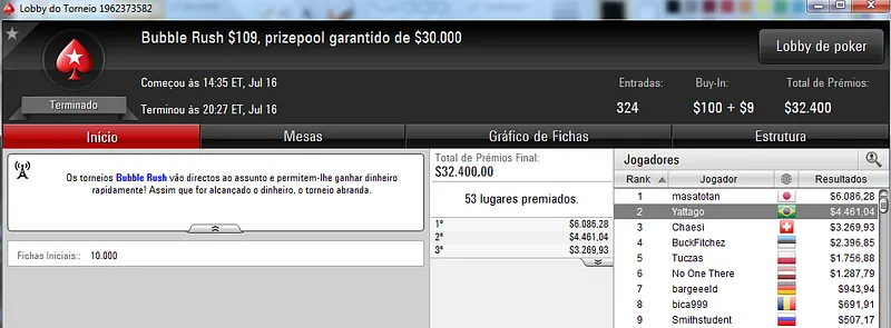 Ainda na casa dos 5 dígitos, Renato "kaneoya" Kaneoya cravou o $10K Payday para receber $10,560 de premiação. No terceiro lugar, Stere0Love recebeu $6,828 e na posição seguinte, Grande_Prego levou $4,880.
