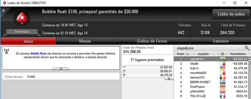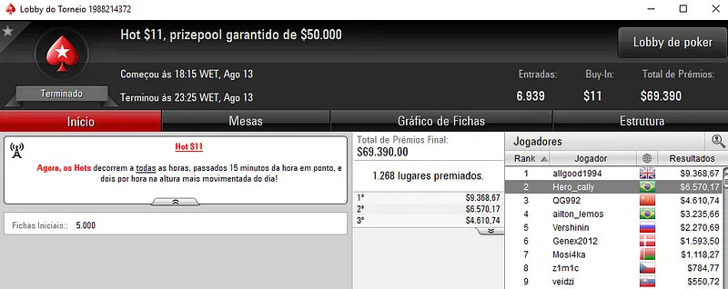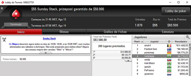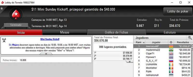 Alisson "heyalisson" Piekazewicz brilhou no partypoker e no PokerStars não foi diferente. O jogador brasileiro levou a melhor no $700 Super Sized Sunday para receber $69,969 de premiação. O torneio contou com 632 participantes e o prize pool chegou aos $420,280, com o jogador brasuca a levar a maior fatia.