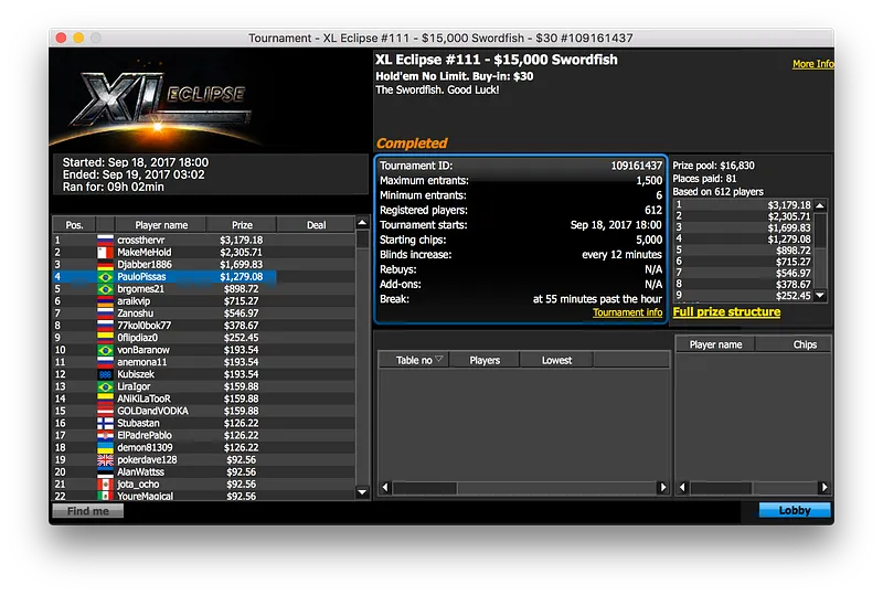 Na mesa final esteve ainda outro brazuca. PaDiLhA10 terminou no 9º posto e recebeu $476.