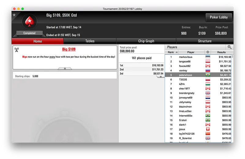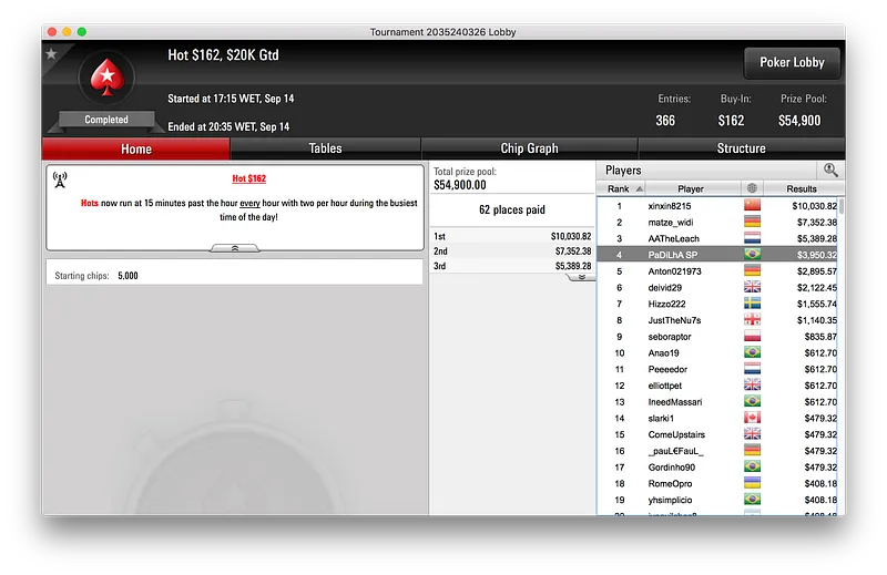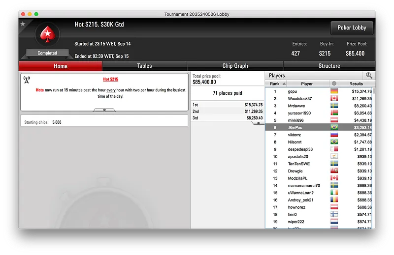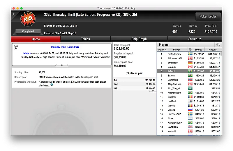 Na mesa final estiveram ainda os brazucas kdrAS (8º - $2.818) e gustavo5454 (9º - $2.065).