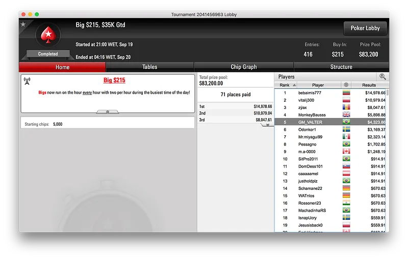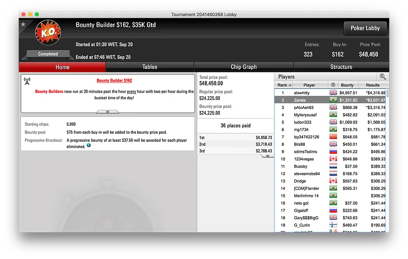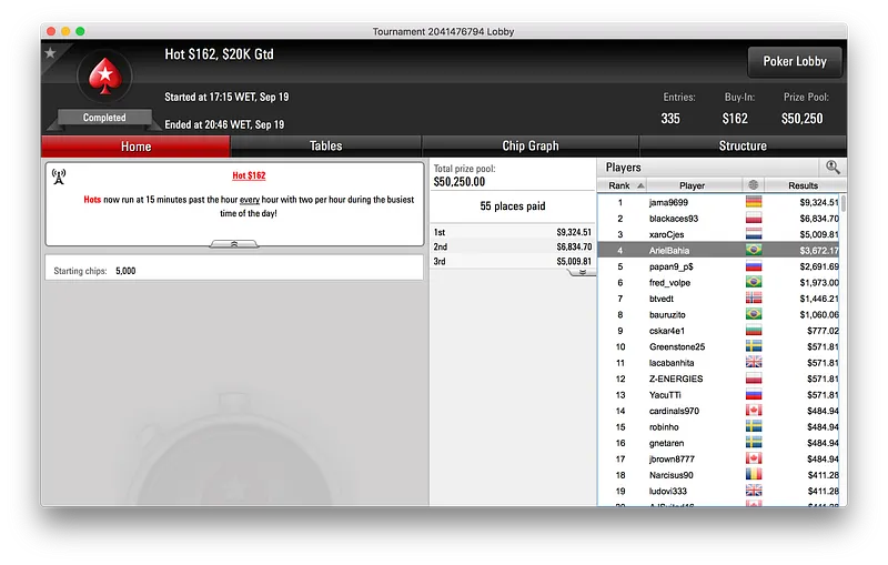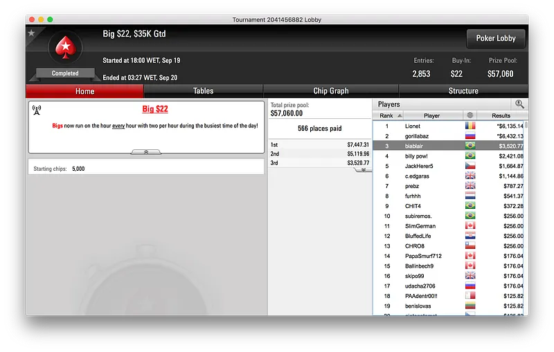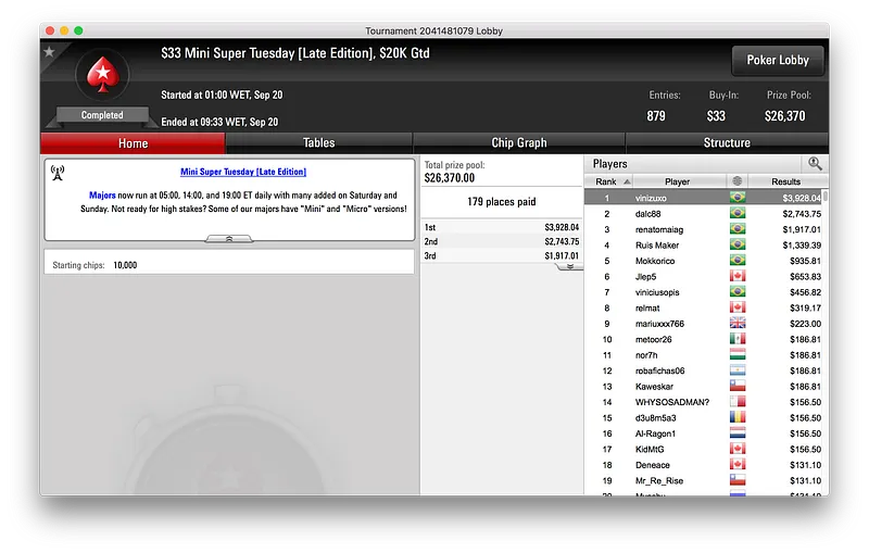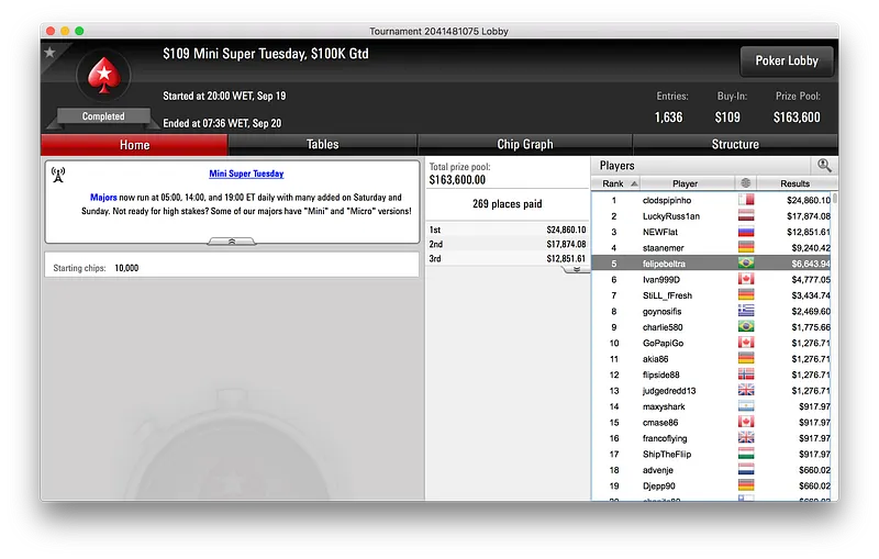 Por fim, e bem colado a lipe piv, ficou baruruzito que alcançou o terceiro lugar do $320 Super Tuesday [Late Edition]. O terceiro posto valeu ao jogador $7.402, a terceira maior premiação brasileira nos torneios regulares do PokerStars dessa terça-feira.