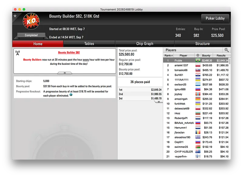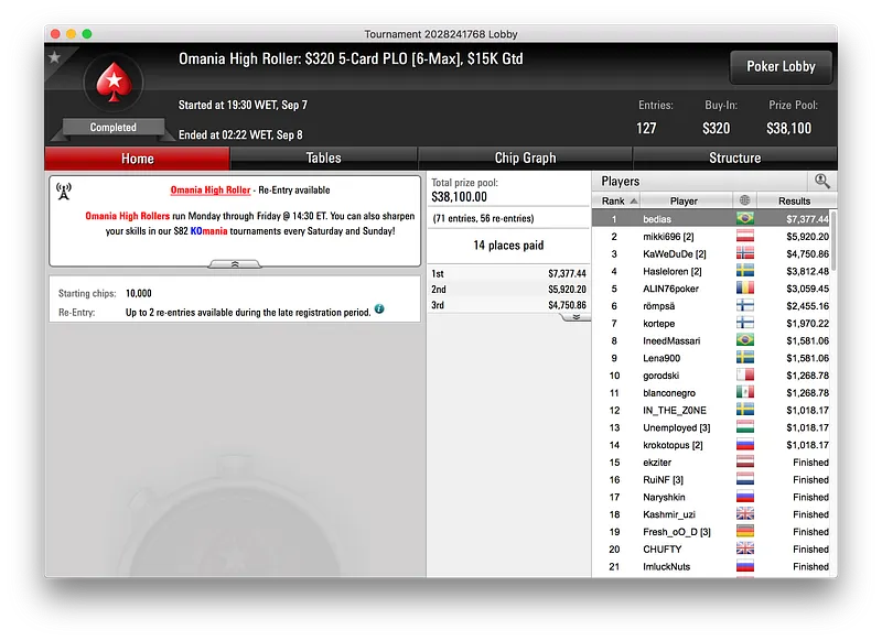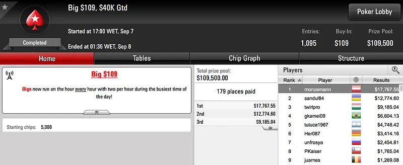 Por fim, a vitória de IgorLira fechou os resultados brasileiros acima dos $10.000. O jogador bateu os 1.660 jogadores que se registraram para disputar os $83.050 de prize pool do Big $55 e embolsou $11.980.
