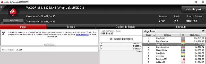 Dois jogadores estiveram muito perto de trazer mais um título High para o Brasil no WCOOP. A serie de torneios do PokerStars está a terminar mas mesmo assim muitos grinders saíram com boas forras destes eventos.