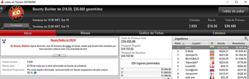 No Big $22 com 2,367 jogadores, arthurziinho superou toda a concorrência par alevar apra casa $6,274 de premiação. O torneio registrou um prize pool de $47,340 e o jogador brasuca não eu chances no field gigante.