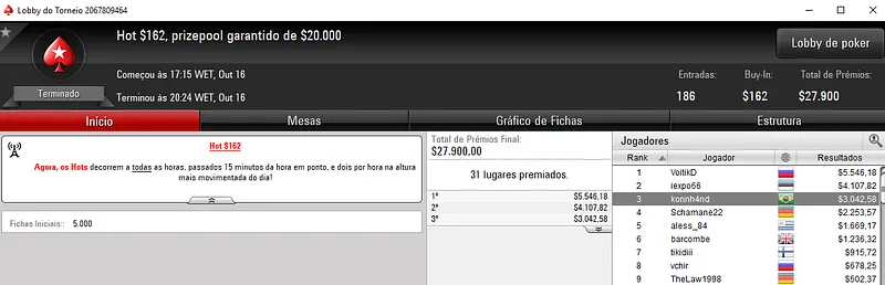 Foi uma reta particularmente feliz para os jogadores de poker online brasileiros nos torneios Big do PokerStars.