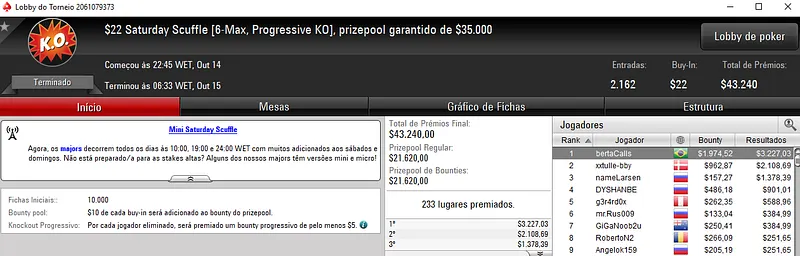 Ontem foi um dia calmo nos panos virtuais do PokerStars. Apenas Júlio "17neffetS_BR" Steffen conseguiu uma forra de 5 dígitos na maior sala de poker online do mundo.
