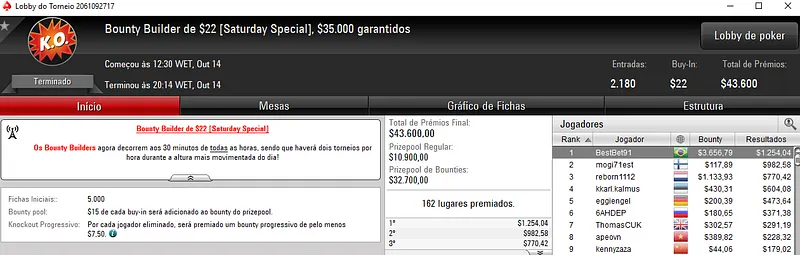 O Bounty Builder $55 contou com 1,441 participantes e viu Júlio "17neffetS_BR" Steffen dar show. Com um prize pool de $72,050, este torneio viu o jogador brasileiros somar $10,857 depois de vencer 8KRKUS8 no heads-up.