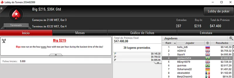 Vários grandes brasileiros saíram ontem do PokerStars com bons prêmios.