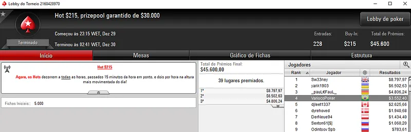 Quem também se deu bem nesta reta foi Daan_kmisa10 que dividiu a premiação no heads-up, garantindo assim $6,469 na segunda colocação do$55 Daily Marathon. Este torneio contou com 946 participantes e o prize pool ascendeu aos $47,300.