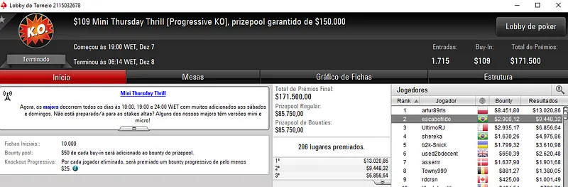 Pedro Correa Vice no Bounty Builder High Roller e BrunoBoucas Apronta no PokerStars