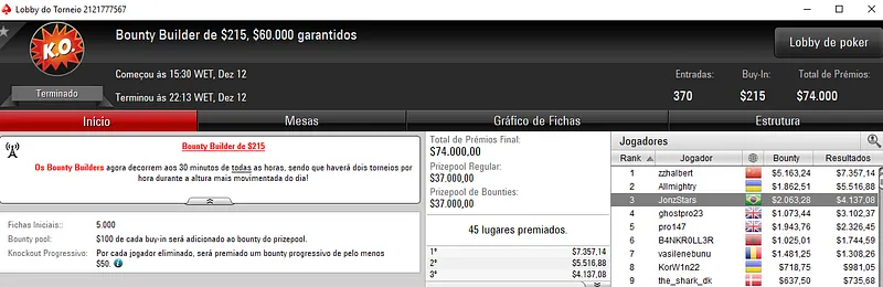 VicFiorese foi o grande campeão ao cravar dois importantes torneios nesta reta. Primeiro ele cravou o Bounty Builder High Roller para embolsar $26,375 de premiação. Este torneio contou com 381 entradas, $109,500 de prize pool e o jogador brasileiro venceu o canadense teckidtq no heads-up.