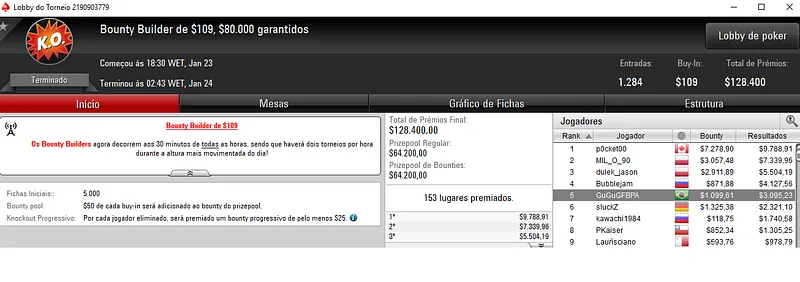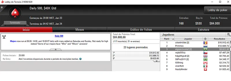Já Pedro "pvigar" Garagnani empilhou dois grandes resultados que valeram mais de $13,000. Ele dividiu a premiação no heads-up do $55 Daily Marathon com Pablo Brito "pabritz" Silva e recebeu $7,119. O mesmo valor que Pablo Brito no torneio que teve 1,101 entradas.