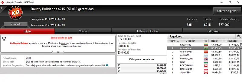 Depois, no Big $55, Pedro voltou a dividir a premiação e a segunda colocação valeu mais $6,531 entre os 1,052 participantes.