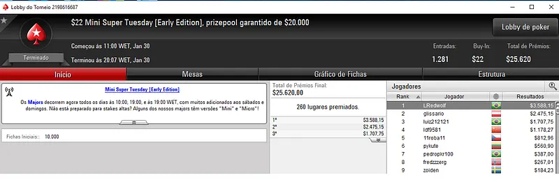 Forras Online: FERRIS243 2º no $1,050 Super Tuesday ($41,271)
