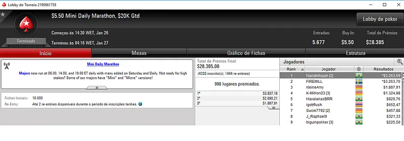 Na sexta-feira, os jogadores brasileiros conquistaram bons resultados nos panos do Pokerstars.