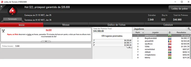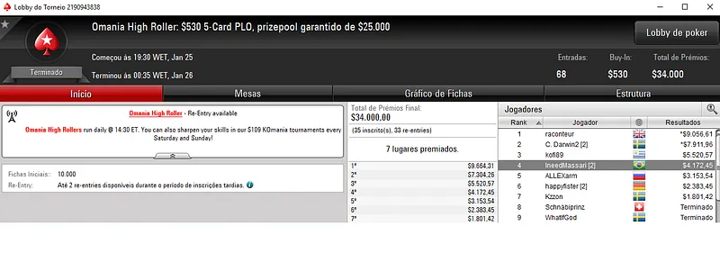 Quem também se deu bem foi Gilson "gilcoe" Coelho que terminou o Bounty Builder High Roller na quarta colocação para forrar $13,123, entre prêmio e bounties. Este evento contou com 499 registros e o prize pool chegou nos $249,500.