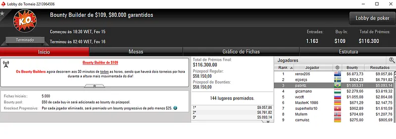 Nicolau Villa-Lobos também deu a cravada no Bounty Builder $44 com 1,935 jogadores. O título valeu mais $9,109 na conta do jogador brasileiro.