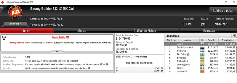 A maior reta da semana trouxe grandes resultados pa aos jogadores nacionais que andaram a sambar na sala de poker online PokerStars.
