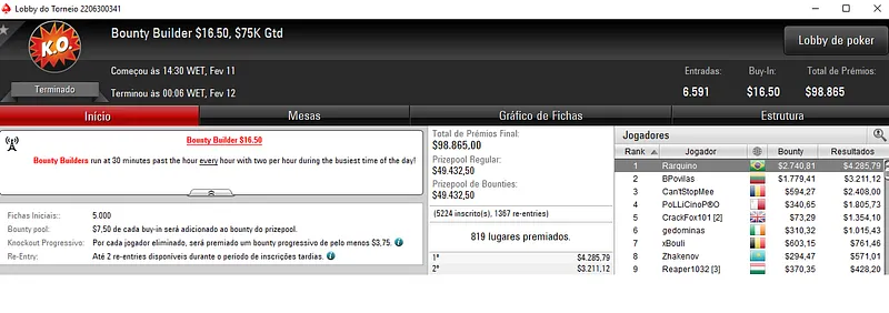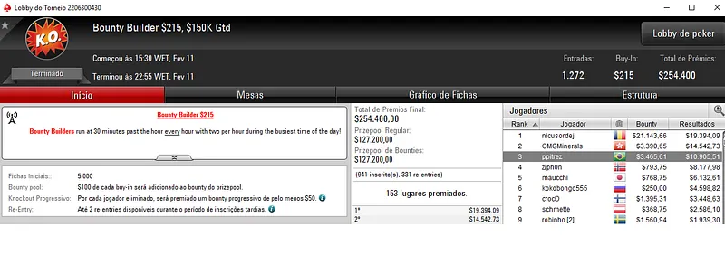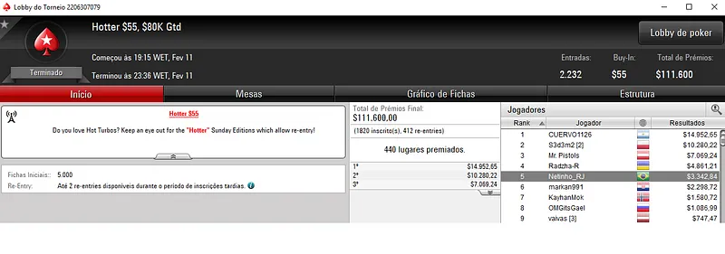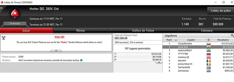 Depois, venceu o Hotter $22 com 5,154 entradas, junto com Thiago "tnapoleao" Napoleão e levou para o caixa mais $11,937, enquanto Thiago encaixou $10,340.