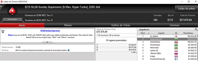 Forras Online: Gustavo Kamei 5º no Sunday Million e Muito Mais