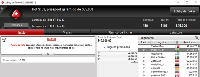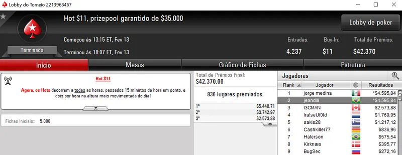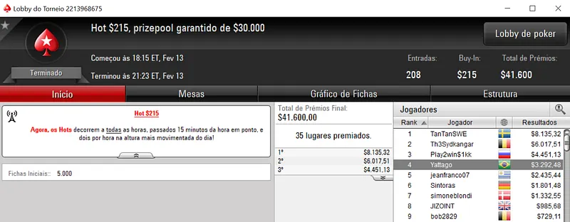 Quem andou sambando nas mesas virtuais foi Mateus "Mateus#9" Lessa que terminou o Super Tuesday na segunda colocação para forrar $34,264. O jogador brasuca apenas foi parado por dirty.brasil no heads-up, neste evento que contou com 239 jogadores e $239,000 de prize pool.