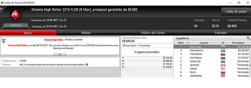 Mais um dia de poker no PokerStars e mais um dia de grandes forras para os jogadores nacionais.