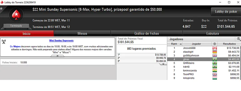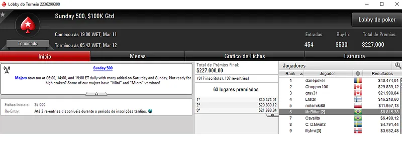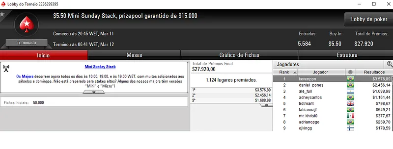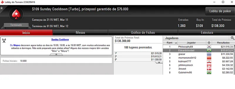 Domingo de forras para os nosso jogadores nos panos virtuais do PokerStars. Mais uma vez as mesas de poker online se encheram para muita ação na reta de domingo que voltou a ser muito rica de resultados verdes e amarelos nos principais torneios da sala da espada vermelha.