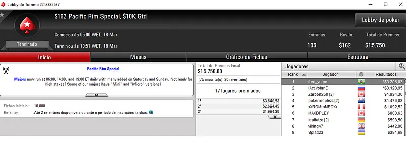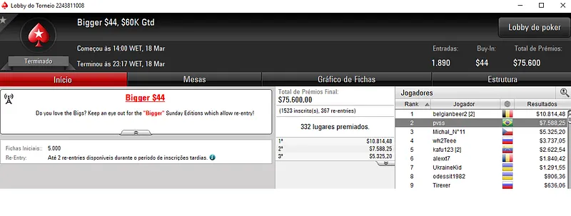 Como já era de esperar o Brasil conquistou grandes prêmios na reta de domingo do PokerStars.