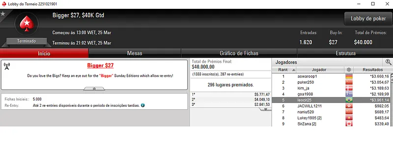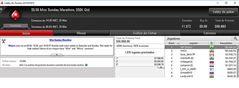 PokerStars: João Simão Crava Sunday High Roller e Embolsa $53,481 & Mais