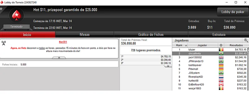 PokerStars: Quarta-Feira Recheada para chaavees, THE ONLY SON e heatbr