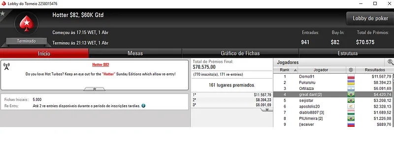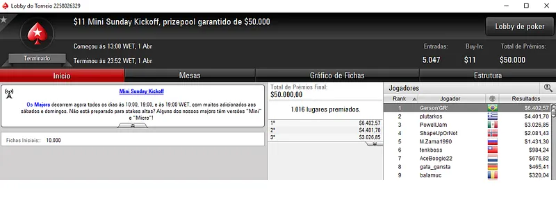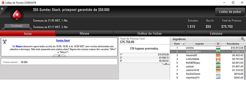 Como acontece quase todos os domingos, os grinders nacionais conseguiram mais uma vez embolsar grandes resultados nos panos virtuais do PokerStars, a maior sala de poker online mundial.