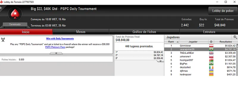 A reta de ontem trouxe vários grinders nacionais com os bolsos recheados dos panos virtuais do PokerStars.