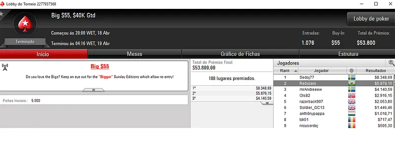 Mais um dia de grandes forras para os jogadores nacionais nos panos virtuais da maior salde poker online do mundo, o PokerStars.