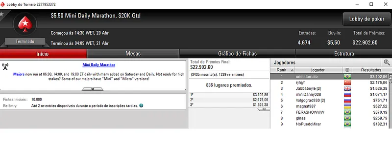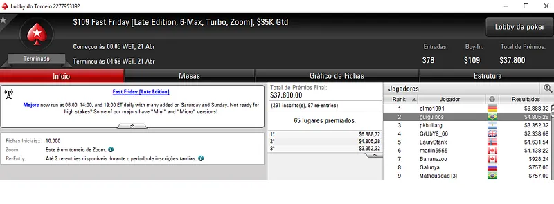 A reta de ontem foi muito produtiva par aos jogadores nacionais que participaram nos diversos torneios do PokerStars.