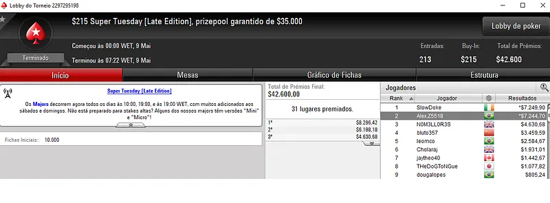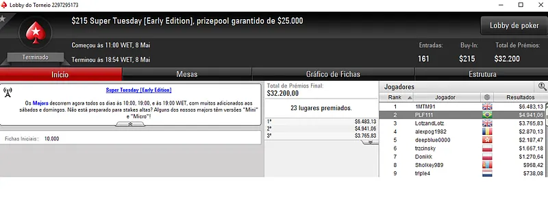 A terça-feira trouxe grandes premiações garantidas no PokerStars e também grandes forras para os jogadores nacionais.