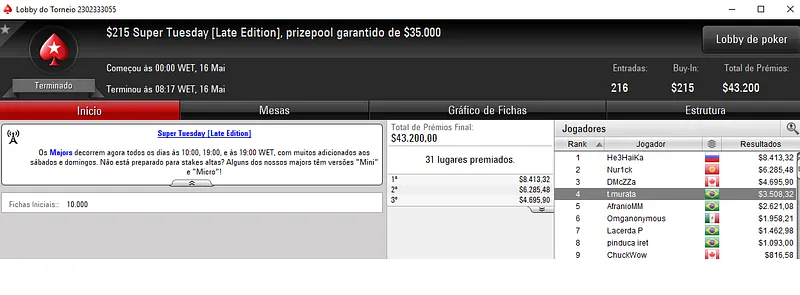 A Super Tuesday trouxe muitas forras nos panos do PokerStars. Ontem, vários jogadores nacionais se saíram bem nas mesas da sala de poker online.