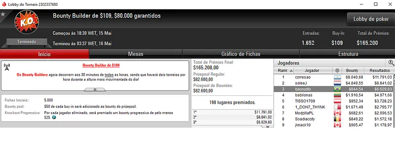 Um desse exemplos é Eduardo "EduardoGarl@" Garla que chegou ao terceiro lugar no Bounty builder High Roller com 777 entradas. A medalha de bronze valeu $23,652 entre prêmio e bounties, dos $388,500 acumulados.