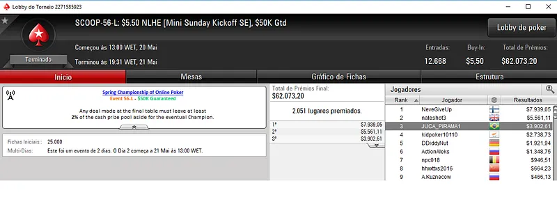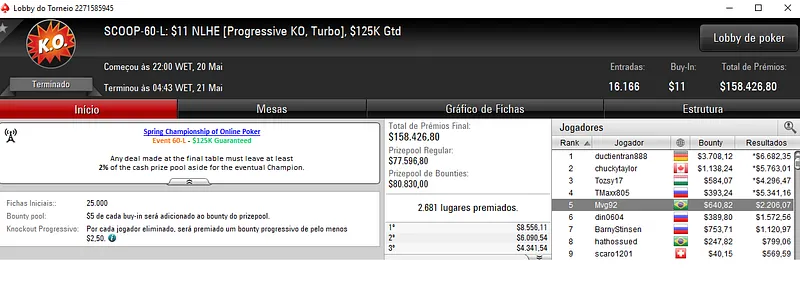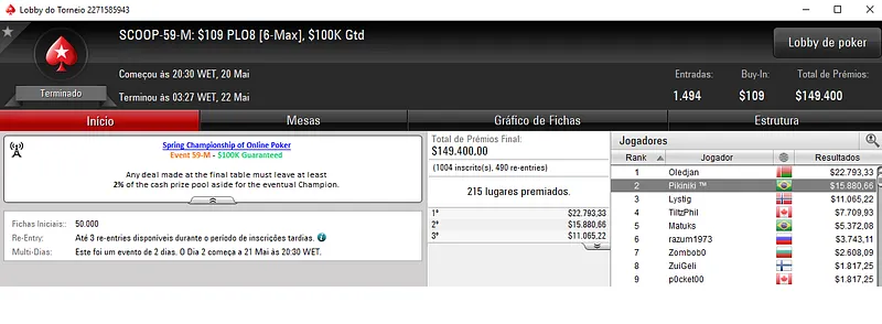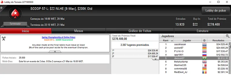 Na ponta final do Spring Championship of Online Poker (SCOOP) do PokerStars vários jogadores nacionais forraram pesado nas mesas desta série de torneios online.
