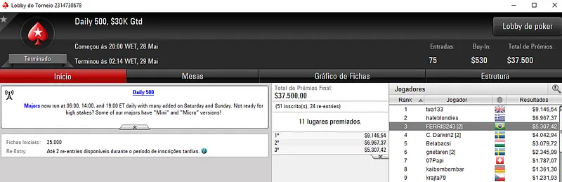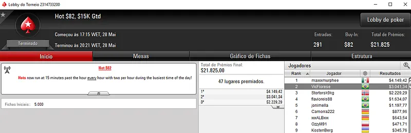 Outros Resultados no PokerStars: