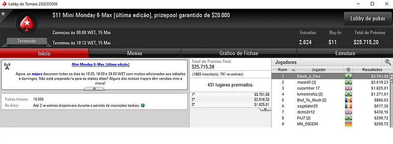 A reta de segunda também foi generosa para os nossos jogadores nos torneios regulares da sala da espada vermelha. Vários jogadores se deram bem nos feltros do PokerStars e pode conferir as maiores forras aqui abaixo: