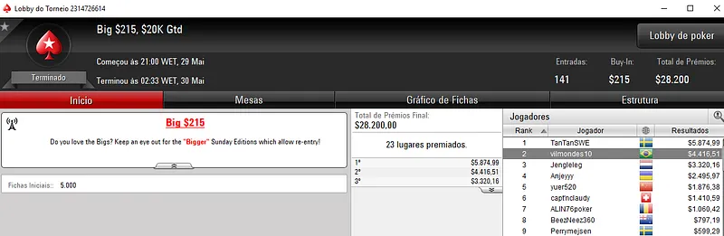Outros Resultados no PokerStars: