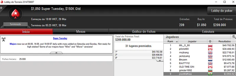 A Super Tuesday trouxe grandes premiações para os jogadores nacionais nos panos do PokerStars. Vários jogadores conseguiram títulos nos principais torneios da sala de poker da espada vermelha.