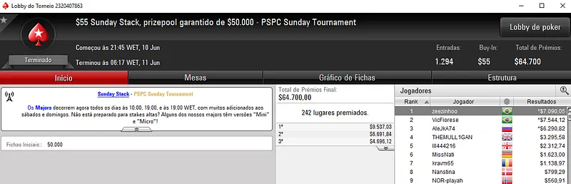 Domingo é dia de grind no poker online e ontem os jogadores brasileiros voltaram a forrar pesado nos panos do PokerStars.