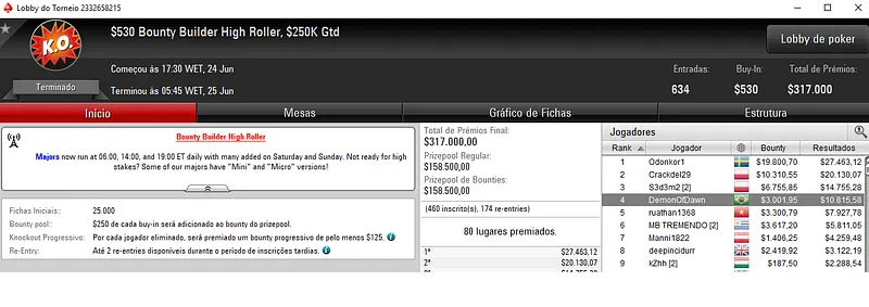 Outros Resultados no PokerStars:
